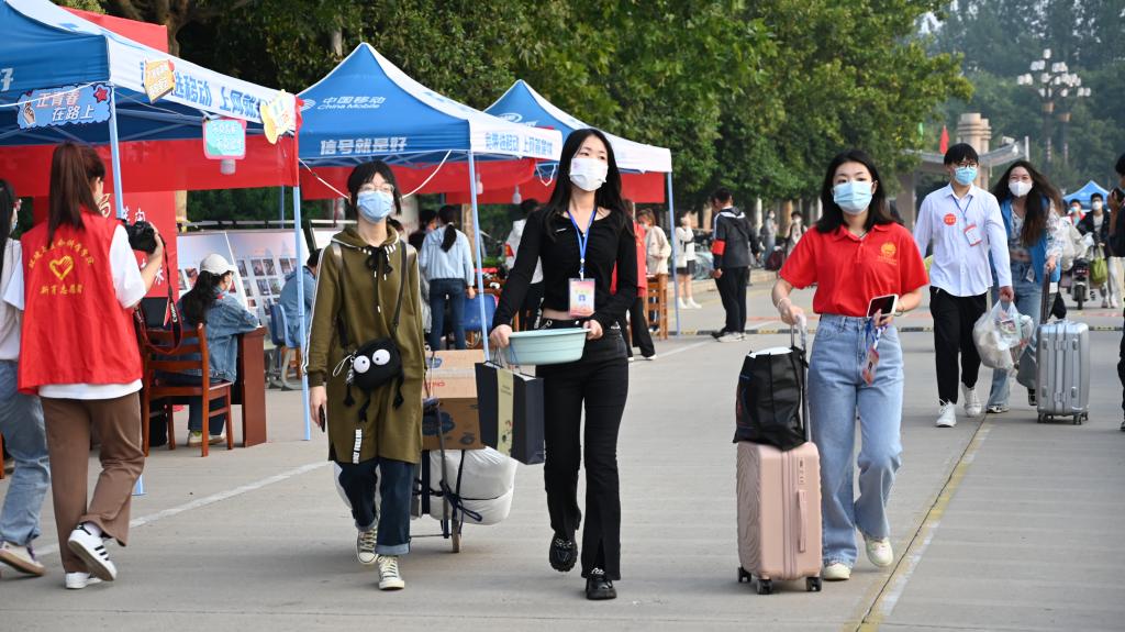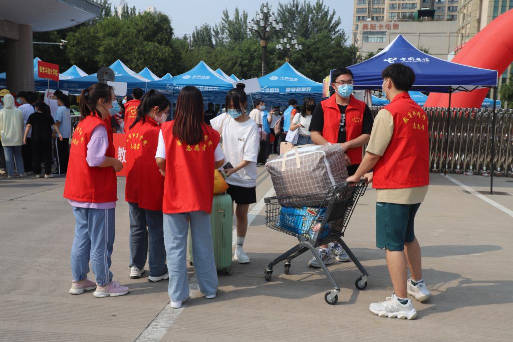 在高铁站、火车站、汽车站,学校设立接站点,为新生们提供接站服务;迎新现场,志愿者早早在门口守候,为新生提供搬运行李服务;安排校园爱心接送车,帮助新生运送行李物品……一系列暖心迎新举措,成为新生们的“独家记忆”。