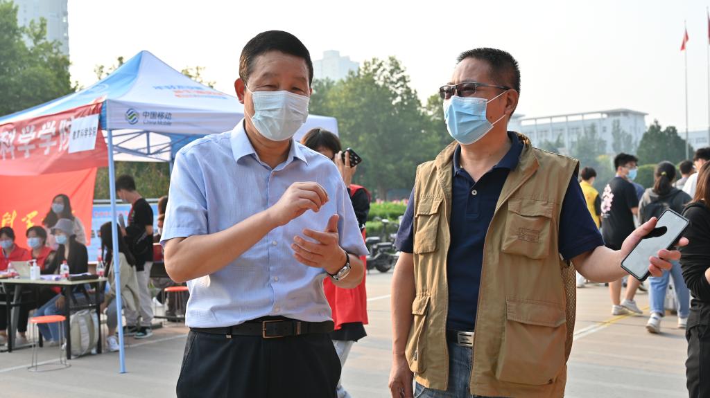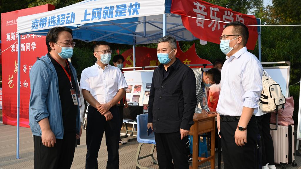 新生报到期间,学校领导来到各学院迎新点,慰问一线工作人员、看望报到新生、了解学院报到进展情况,对辛勤奋战在迎新一线的师生和志愿者表达慰问和感谢;与新同学们亲切交谈互动,鼓励2022级新生尽快转变角色,适应新的学习、生活环境,校领导的嘱托让新生倍感亲切温暖。