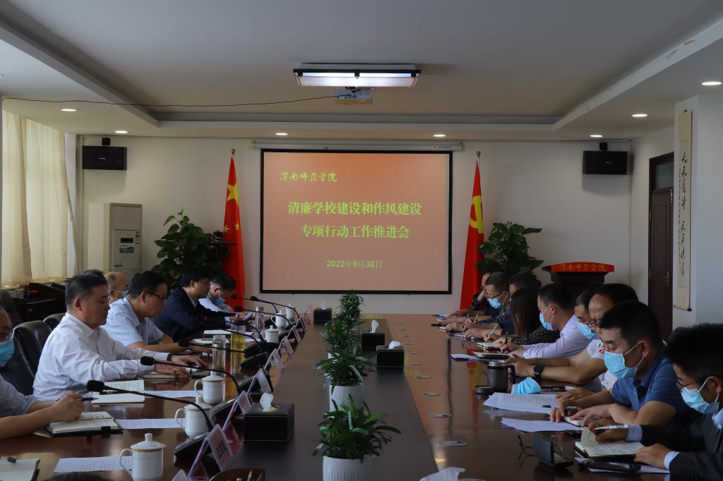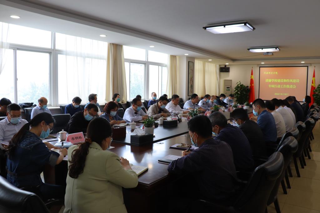 9月30日下午,学校召开清廉学校建设和作风建设专项行动工作推进会。党委书记卓宇出席会议并讲话。党委副书记、纪委书记、监察专员、清廉学校建设领导小组副组长、作风建设领导小组副组长肖耀刚主持会议。