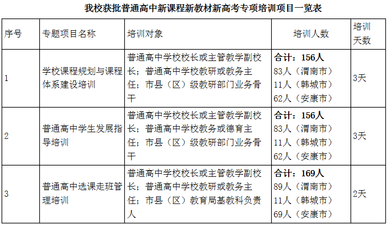 9月30日,陕西省教育厅办公室发布了《关于做好普通高中新课程新教材新高考专项培训项目的通知》(陕教基二办〔2022〕21 号),全省共5家单位被确定为承办单位,best365成功入选,承担培训人数481人。这是省教育厅首次设立该项目。