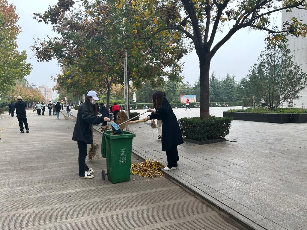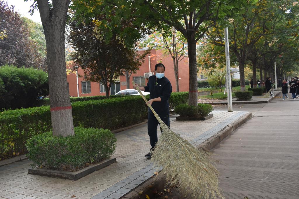 活动一开始,各学院劳动队伍齐聚卫生责任区域。全体干部、教师布排有经验、指导有方法。大家一切行动听指挥,责任分工明确、协作互助到位。同学们你捡我拾、边扫边收,热火朝天。整个校园环境很快就有了提升:路面干净,绿篱、绿化带整洁。