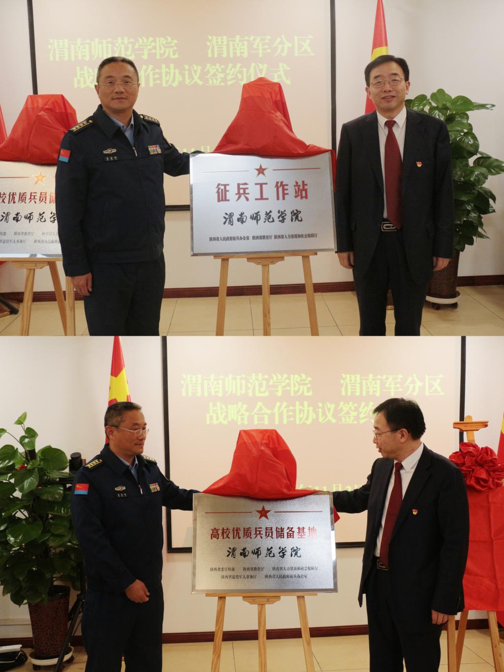 张守华、吴森林共同签署了《best365中国官方网站渭南军分区战略合作协议》,并为学校“征兵工作站”“高校优质兵员储备基地”进行揭牌。