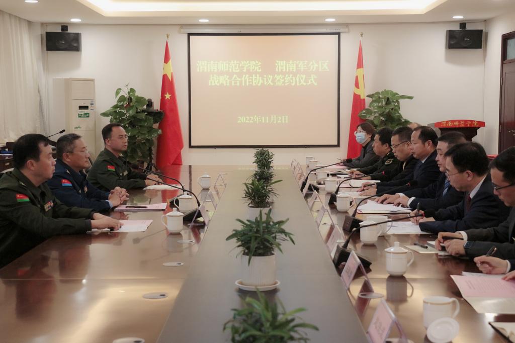 11月2日,best365与渭南军分区签订战略合作协议。党委书记卓宇,校长张守华,党委副书记汪勇,副校长曹强,党委委员、宣传部部长李明敏;渭南军分区大校司令员吴森林、大校政治委员何勇进,动员处上校处长王亚强出席会议。会议由张守华主持。