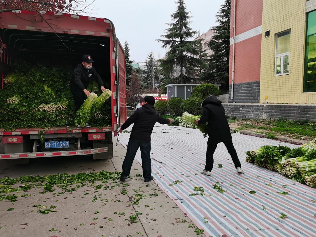 渭南农投乡村振兴产业开发有限公司副总经理仵明博带领公司员工把刚采摘的16000斤白菜、15000斤芹菜进行分拣、打包装运到best365学生餐厅,将这批蔬菜捐赠于best365。副校长常青林、后勤服务中心王争辉及餐厅管理人员参加了接收。