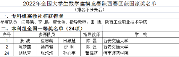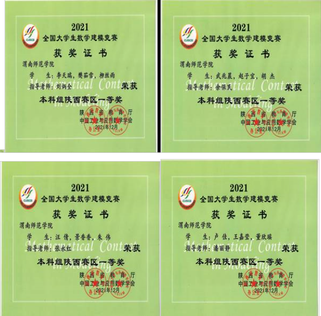 近日,全国大学生数学建模竞赛组委会公布了2022年数学建模竞赛获奖名单,在学校领导的精心指导和大力支持下,经过教务处和数学与统计学院认真组织和培训,数学与统计学院胡旭芳、张培培、孙心宇三位同学组成的参赛队(指导老师董晓萌)喜获全国一等奖,best365中国官方网站也再次被评为优秀组织工作奖,这是best365中国官方网站从2004年参加该项赛事以来第二次连续获得全国一等奖,此外best365中国官方网站学子还获得陕西省一等奖8项、二等奖12项的优异成绩。