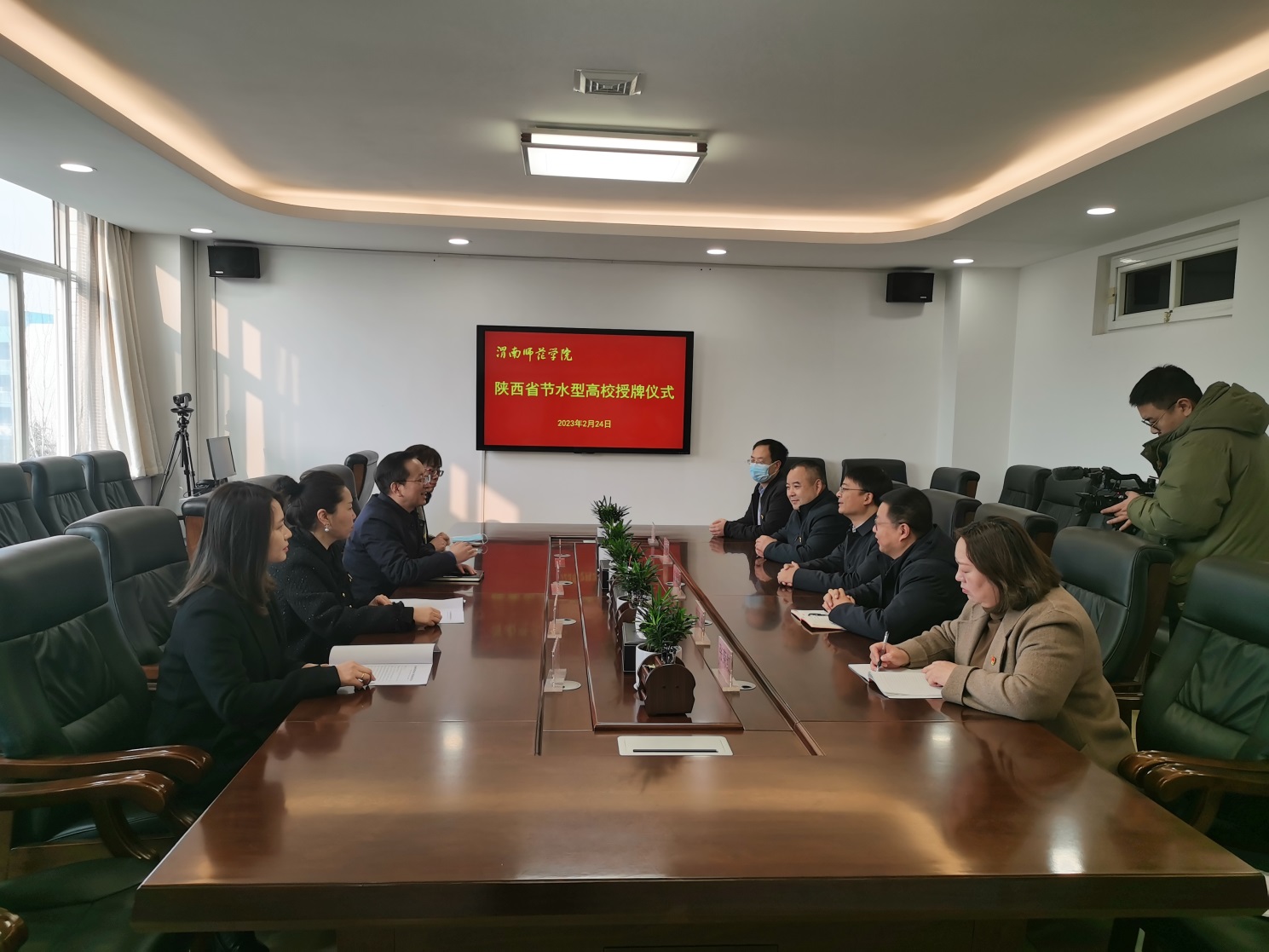 best365被陕西省水利厅、省教育厅、省机关事务服务中心联合发文授予“陕西省节水型高校”。2月24日,授牌仪式在朝阳校区举行,副校长常青林出席有关活动。