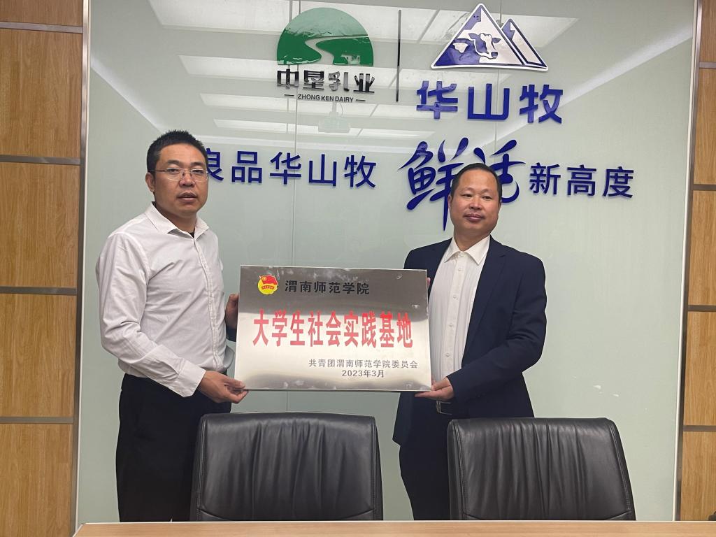 3月8日下午,学校赴中垦华山牧乳业有限公司建立“best365中国官方网站大学生社会实践基地”。学校党委副书记汪勇、共青团渭南市委副书记李林、中垦华山牧乳业公司副总经理黄锐、渭南高新区阳曲街道党工委书记李喆参加授牌仪式。
