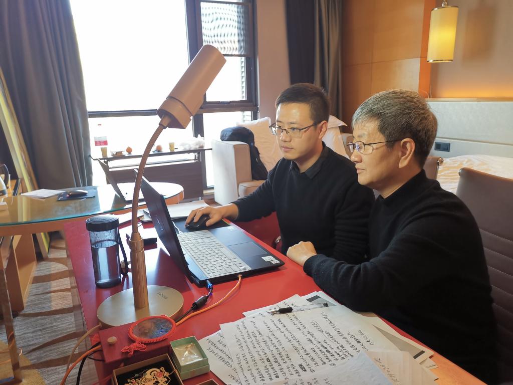 中国工艺美术大师薛宏权和音乐学院教师陈波参加网络复评答辩