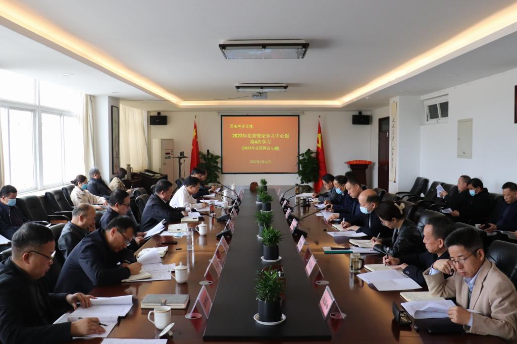 3月15日下午,学校召开党委理论学习中心组2023年第4次学习(扩大)会。重点传达学习习近平总书记在全国两会上的重要讲话精神,专题学习全国两会精神,党委书记卓宇主持。