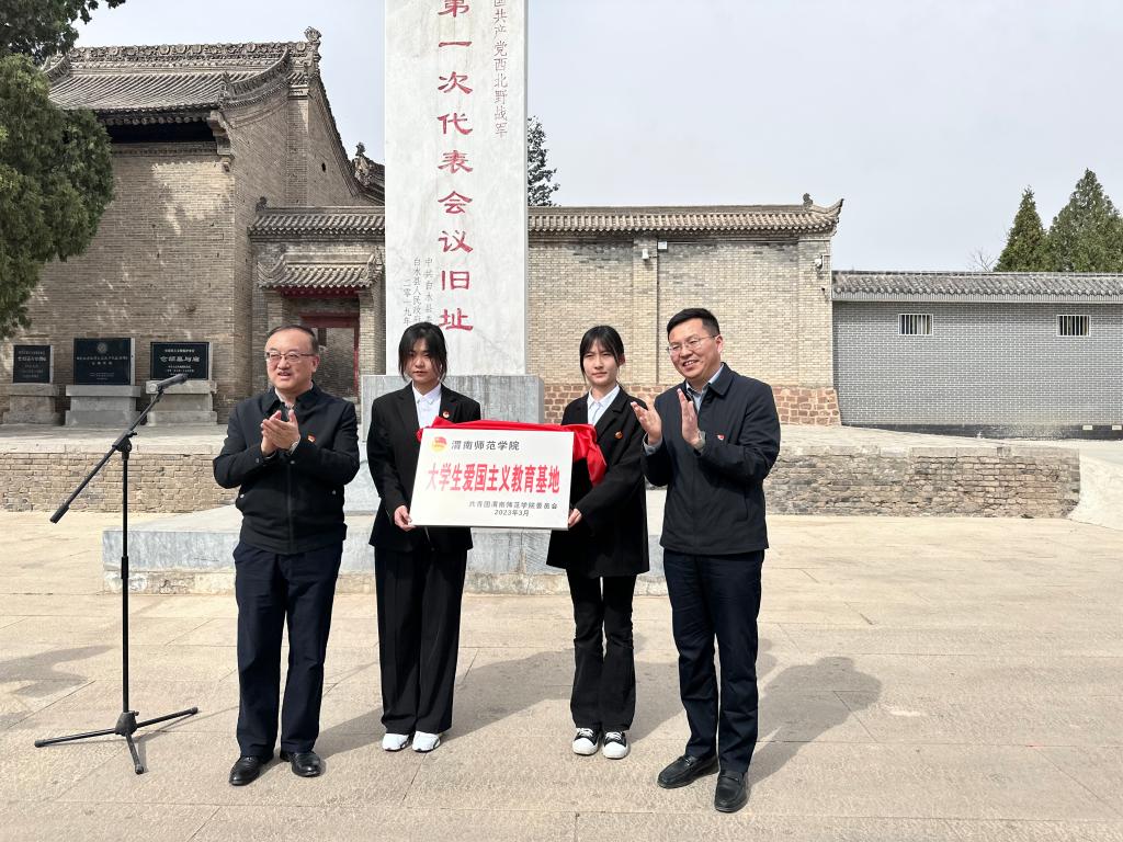 为全面贯彻党的二十大精神,认真落实习近平总书记关于弘扬爱国主义精神,加强爱国主义教育的重要指示精神,落实“铸魂育人”工程。3月15日,校团委分别在蒲城县永丰革命烈士陵园、澄城县壶梯山战役纪念馆、白水县西北野战军第一次代表会议旧址(仓颉庙)举行“best365中国官方网站大学生爱国主义教育基地”揭牌仪式。