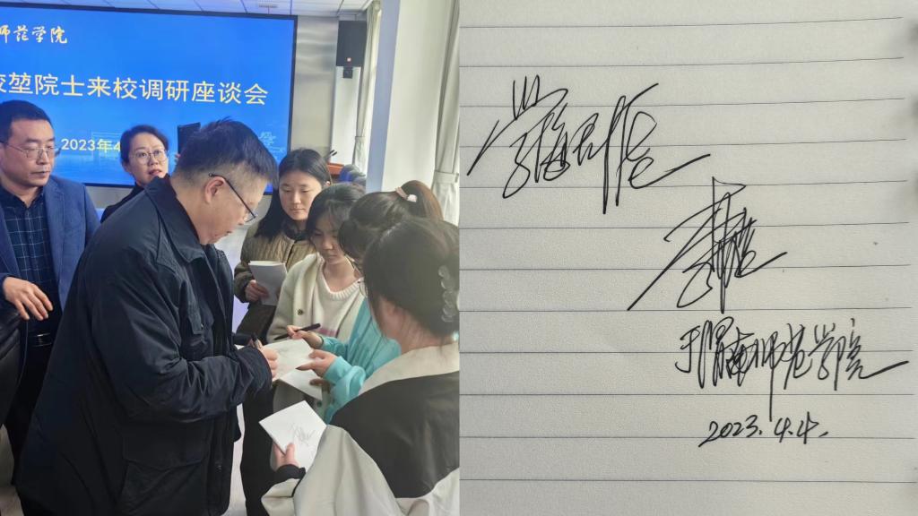 会后,李校堃院士与学生代表们亲切交流并为学生留下签名,“学海无涯”四字表达了他对青年学生的美好祝愿和殷切期望。
