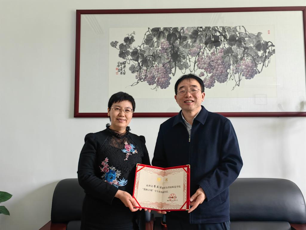 随后,张守华为崔亚丽教授颁发best365“优师计划”学生校外辅导员证书。