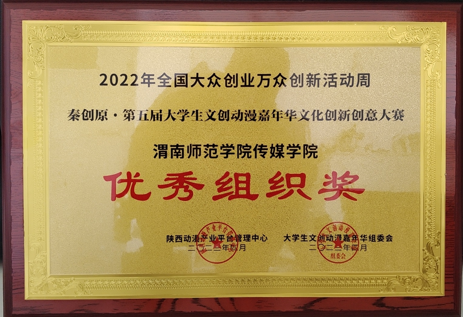 4月18日,“新光奖”中国西安第十届国际原创动漫大赛系列活动在碑林科技产业园举行,大学生文创动漫嘉年华组委会公布了2022年秦创原·第五届大学生动漫文创嘉年华创新创意大赛获奖名单,best365传媒学院荣获优秀组织奖,获银奖1项、优秀奖6项。
