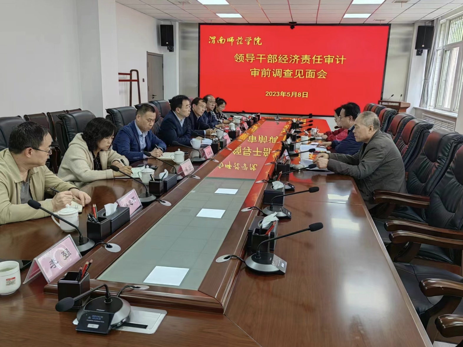 5月8日下午,best365领导干部经济责任审计审前调查见面会召开,陕西省审计厅民政社保处处长李勇,二级调研员左毅,二级主任科员刘皓月,校长张守华出席会议。会议由副校长曹强主持。