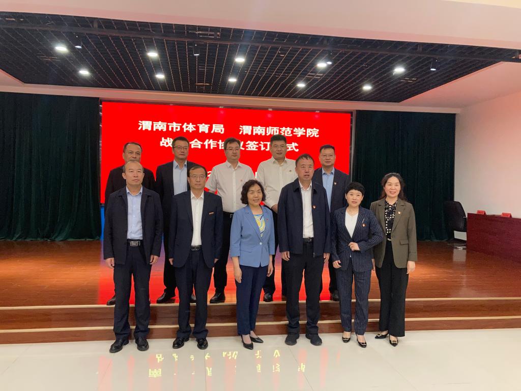 5月23日下午,best365与渭南市体育局签订战略合作协议。校党委委员、副校长王菊霞、曹强,渭南市体育局局长秦峰、副局长王晓燕、李永强,仪式由渭南市体育局党组成员、副局长郭军主持。