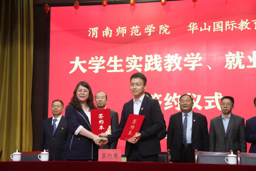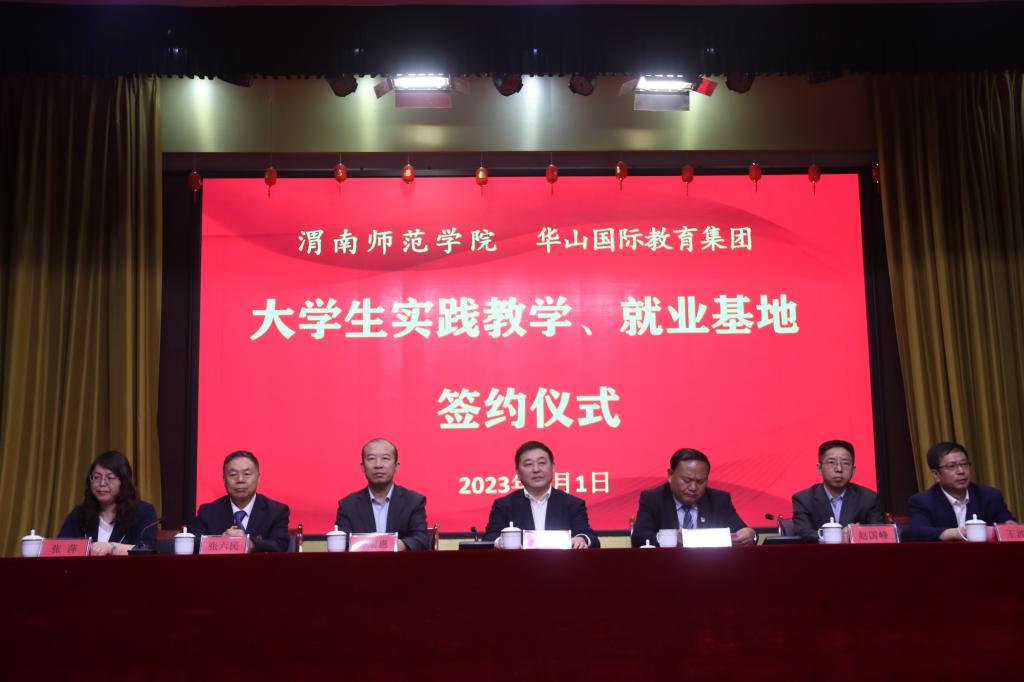 华山国际教育集团董事长任永敏、副总裁张六民、渭南学区总裁王波显、渭南永兴高级中学校长杨森望、西北新世纪中等专业学校校长肖鹏、渭南轨道交通运输高级技工学校校长朱相心出席签约授牌仪式,仪式由集团人教部部长王桃萱主持。
