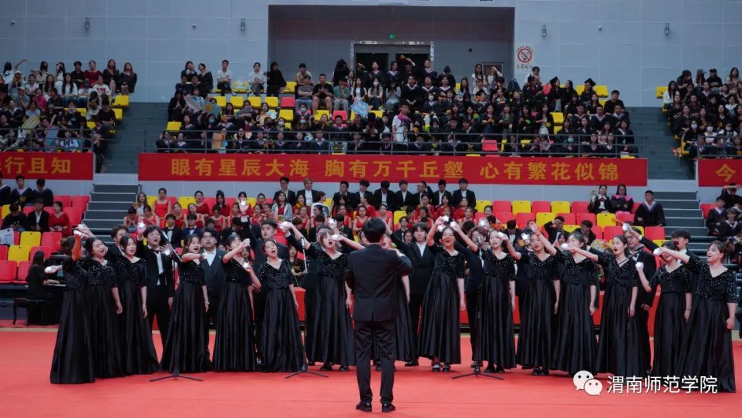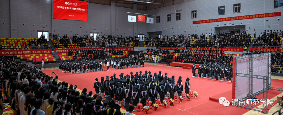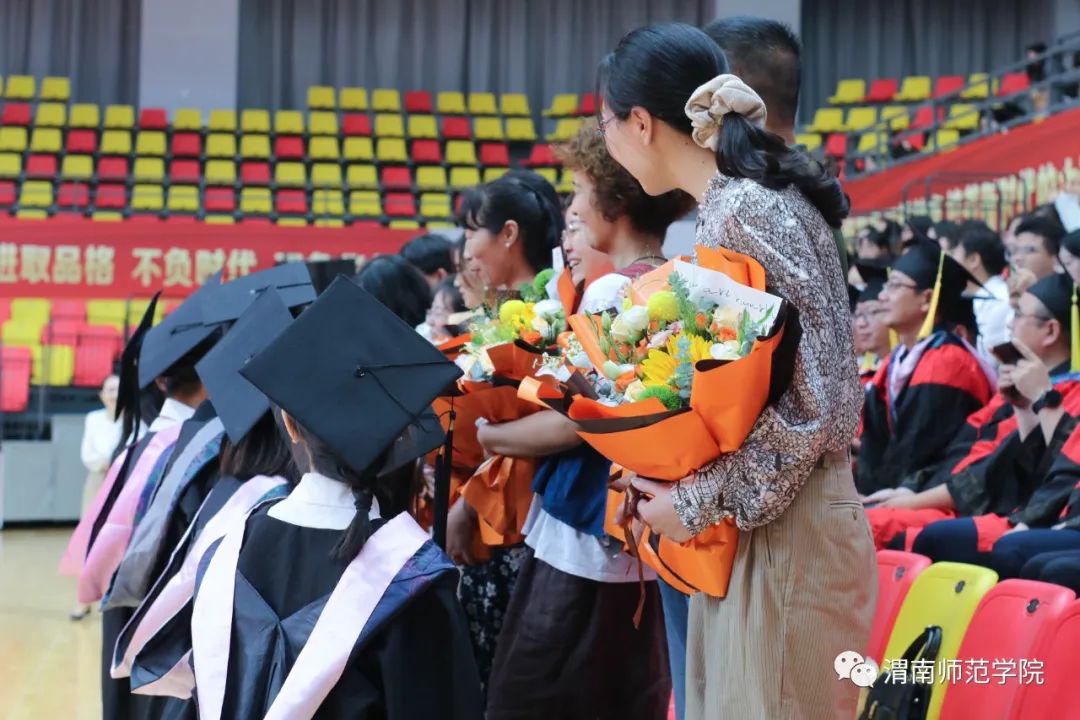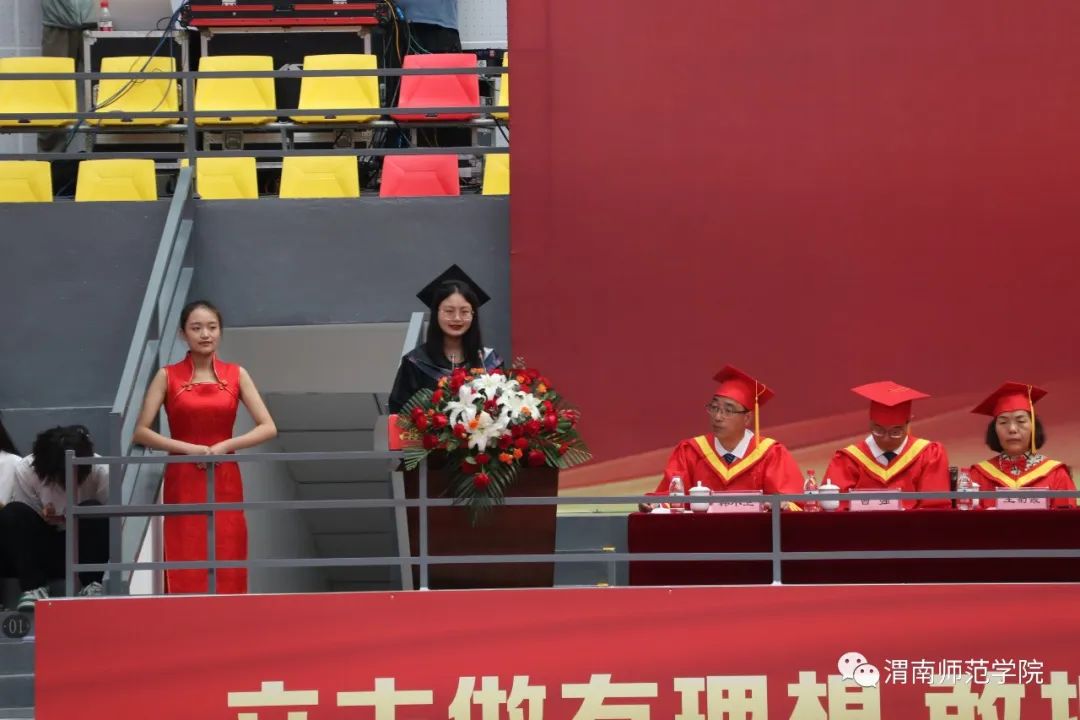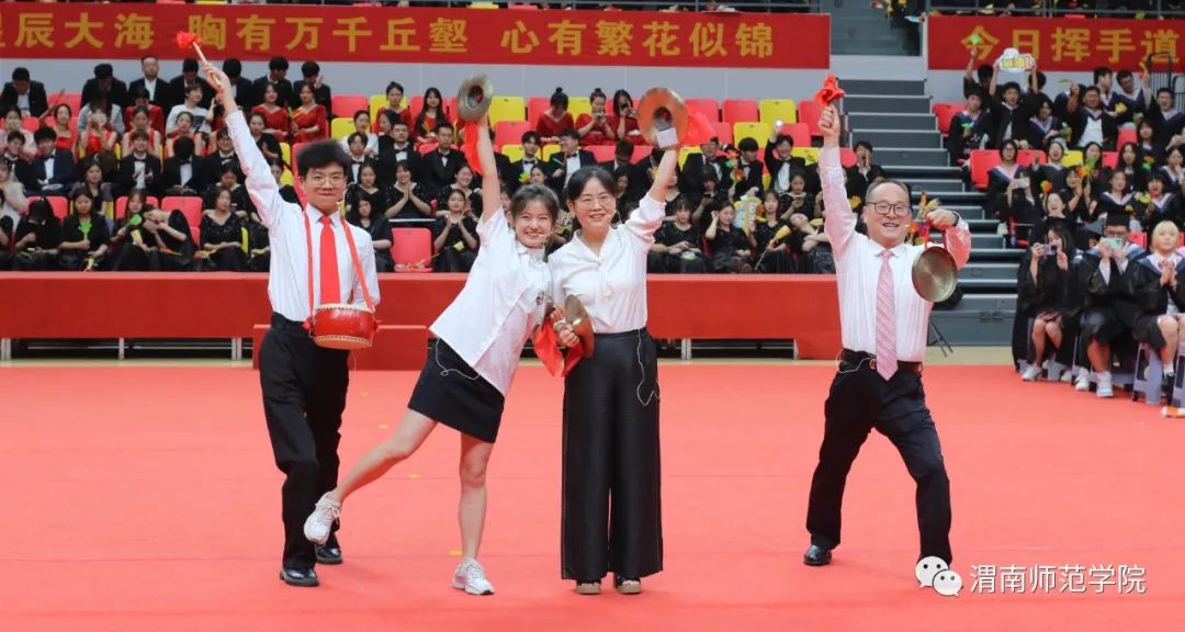 校长张守华在致辞时勉励2023届全体极其幸运、历尽艰辛而又光彩熠熠的毕业生“后生”“后浪”们,要接续奋斗,不负时代,珍惜青春韶华,将“青春梦”融入“中国梦”,怀揣与时代同步伐、与人民共命运的伟大志向,树立为祖国为人民永远奋斗、赤诚奉献的坚定理想;要艰苦奋斗,砥砺前行,秉承渭师人育人为本、为国担当、艰苦创业、勇争一流的优良传统,知重负重,“不甘人后、奋起直追”;要顽强奋斗,站稳讲台,能够在新技术奔涌而来之际,做时代的参与者,勇立潮头,做“四有好老师”,在强国建设的事业中、民族复兴的伟业中,不断贡献青春的力量。