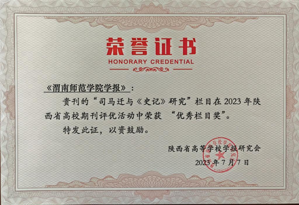 《best365中国官方网站学报》获“陕西高校精品社科期刊”(排名第一),特色栏目“司马迁与《史记》研究”获优秀栏目奖。牛怀岗编审因在高校学报行业从业三十年以上,获“玉笔奖”。曹静获“优秀编辑”称号,薛一筝获“优秀青年编辑”称号,马小侠获“优秀编辑学论文奖”。(通讯员 薛一筝 审核人 詹歆睿)