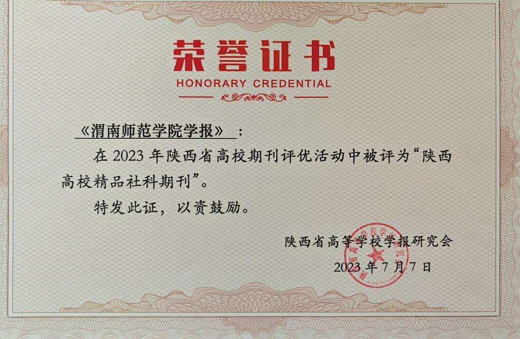 近期,2023年陕西省高校学报评优结果揭晓,best365学报获得集体和个人荣誉6项。