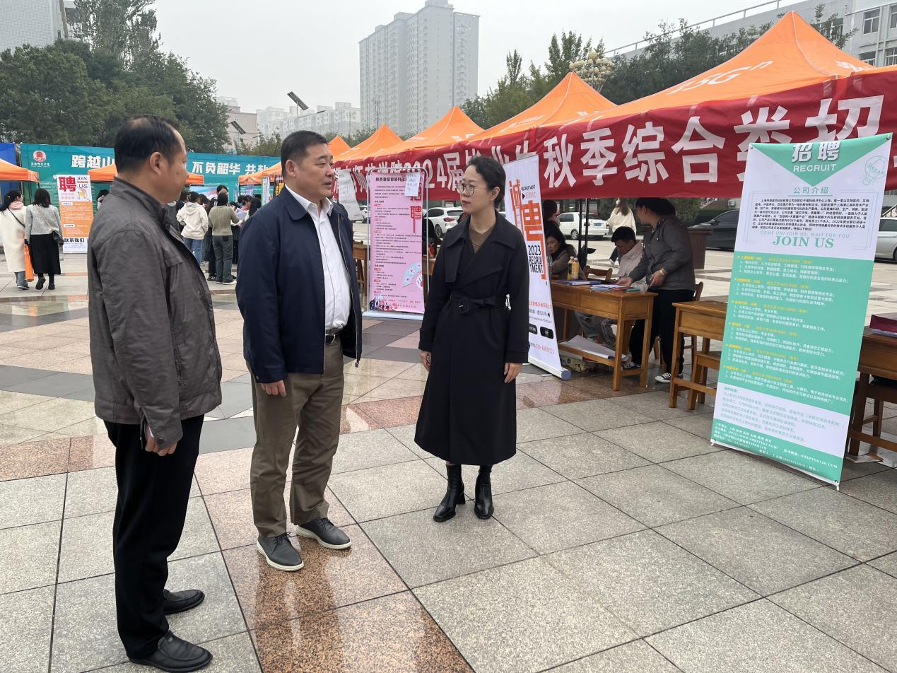 为深入贯彻落实党的二十大精神,认真落实党中央、国务院“稳就业”“保就业”决策部署,抢抓秋季招聘关键期,全力促进学校2024届毕业生顺利就业和高质量就业,10月12日,学校举办2024届毕业生秋季综合类招聘会。学校党委书记卓宇、副书记汪勇来到招聘会现场与企业进行深入交流,并与毕业生进行亲切交谈。