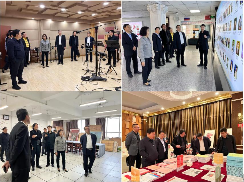 张茂聪一行首先参观了莫斯科艺术学院“深耕教坛,强国有我”庆祝第39个教师节书画创作成果展,观看学前教育专业手工作品展,考察排练厅、书法教室、学前教育实训室、音乐厅、画室、琴房、录音棚等教学场所。