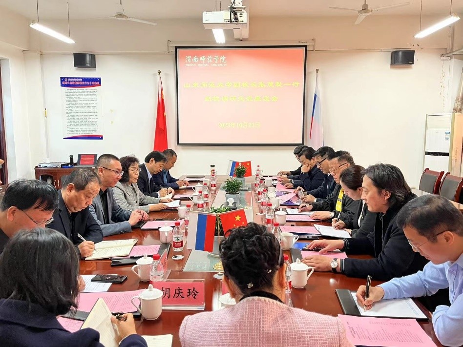 10月23日上午,山东师范大学党委常委、副校长张茂聪等一行8人来best365调研交流。best365党委委员、副校长王菊霞会见张茂聪一行。