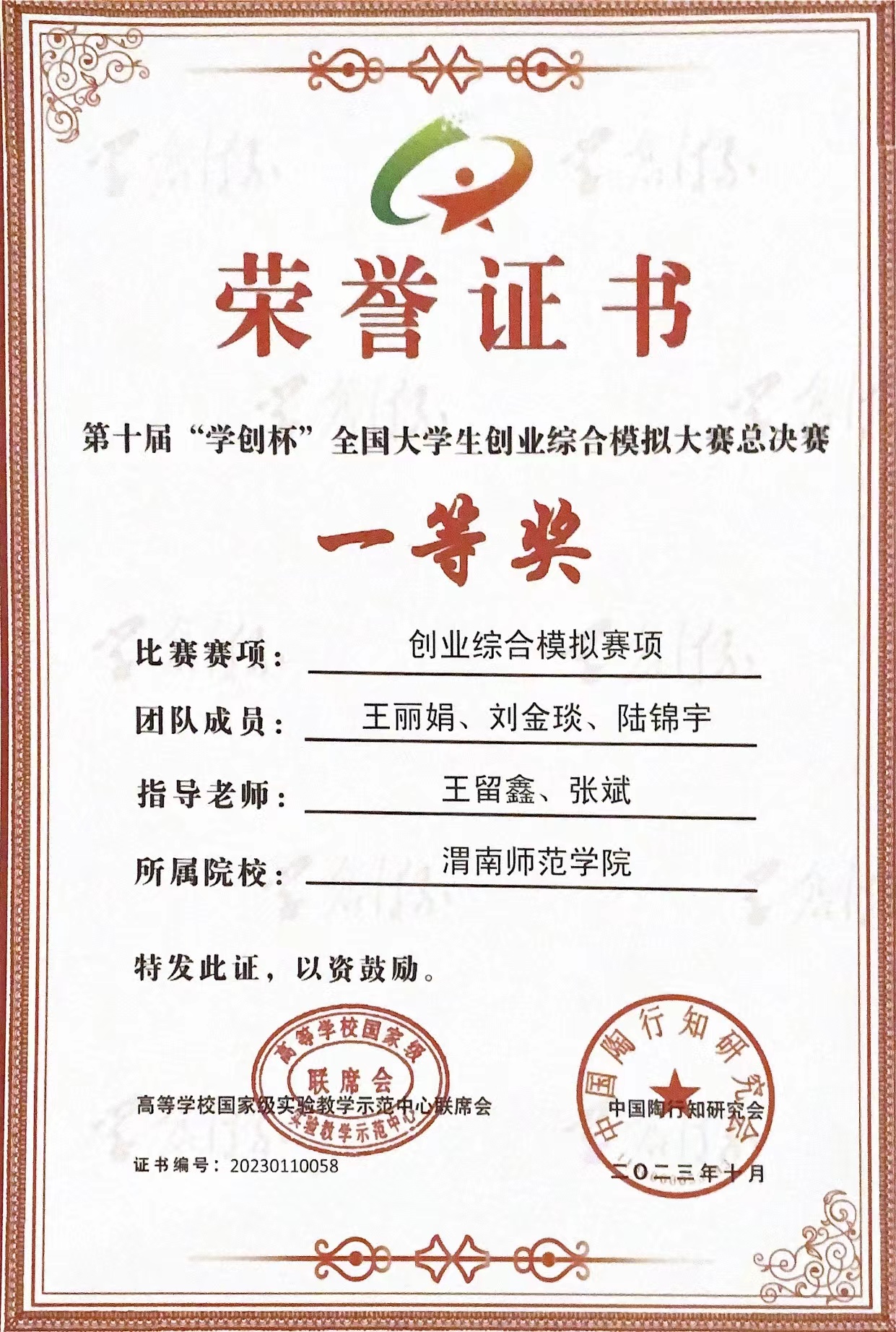 “学创杯”全国大学生创业综合模拟大赛由高等学校国家级实验教学示范中心联席会经管学科组、中国陶行知研究会主办,是全国创业类最具影响力的赛事之一。“学创杯”全国大学生创业综合模拟大赛是经教育部认定的国家级A类赛事,在《2023全国普通高校大学生竞赛排行榜》上列居第48位。经济与管理学院高度重视本次专业竞赛,关注训练进度,组织指导教师团队,给予最大的支持和鼓励。参赛选手们在指导老师的带领下,坚持不懈,永不言弃,提升了分析问题、解决问题的能力,充分展现了经济与管理学院参赛选手的风采。(通讯员 张斌 审核人 李富荣)