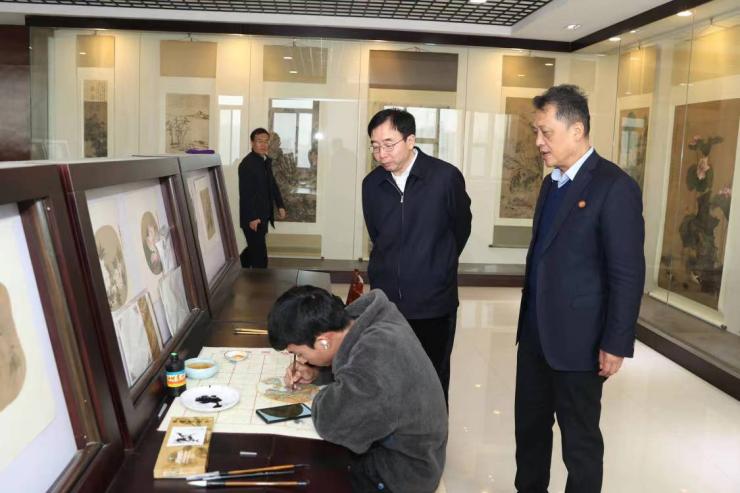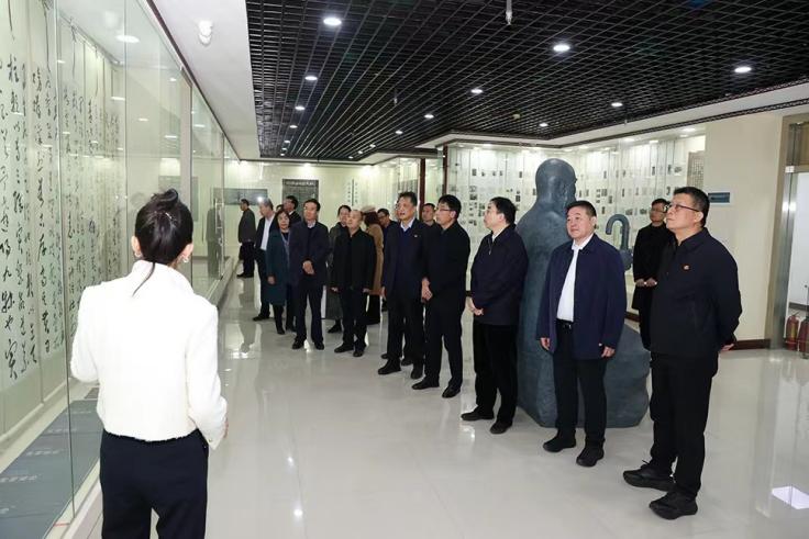 在咸阳师范学院党委书记赵万东和校长王长顺的陪同下,学校领导一行参观了于右任书法馆和美术馆,学习参观结束后双方开展了座谈交流,座谈会由赵万东主持。