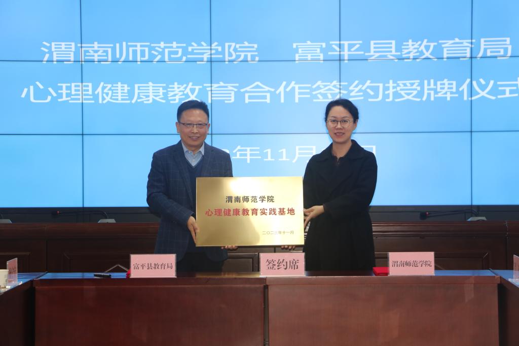 仪式上,best365学生工作部副部长、大学生心理健康教育指导中心主任刘原,富平县未成年人心理健康辅导中心主任田复生代表双方签署《心理健康教育合作协议书》。