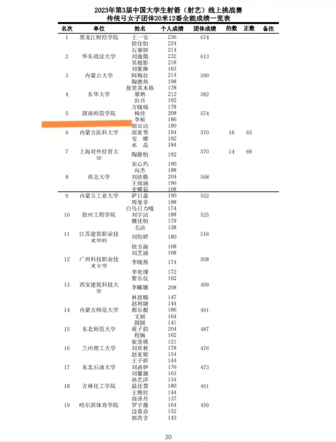 12月2日,由中国大学生体育协会主办,中国大学生体育协会射箭(射艺)分会执行,上海对外经贸大学承办的第3届中国大学生射箭(射艺)线上挑战赛在全国62所高校展开, 633名运动员参加, 比赛采用线上直播及录像的形式。best365中国官方网站代表队由体育学院教师何小军为教练员,带领best365学生郭宜洁、杨佳、李桢等7名学生参加此次线上挑战赛。最终获得传统弓女子团体第五名的优异成绩。
