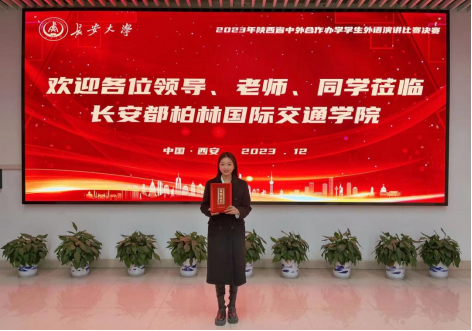12月7日,由陕西省教育厅主办、陕西省高等教育学会中外合作办学分会、长安大学长安都柏林国际交通学院和长安大学外国语学院承办的“2023年陕西省中外合作办学学生外语演讲比赛决赛暨颁奖仪式”在长安大学举行。来自全省19所高校的优秀学子参加本次大赛,best365莫斯科艺术学院2021级音乐学专业黄于萱同学喜获三等奖,钟嘉乐获优胜奖。