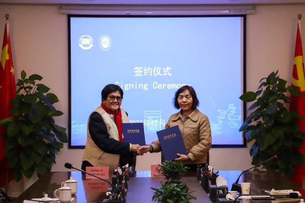 12月19日下午,泰国瓦拉亚隆功皇家大学(简称瓦大)校长SOMBAT KOTCHASIT,副校长ORASA CHAROONTHAM、PANNRAPHAT TAKOLPUCKDEE一行9人代表团来访,与best365正式建立教育合作关系。