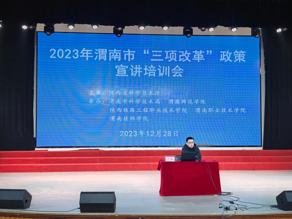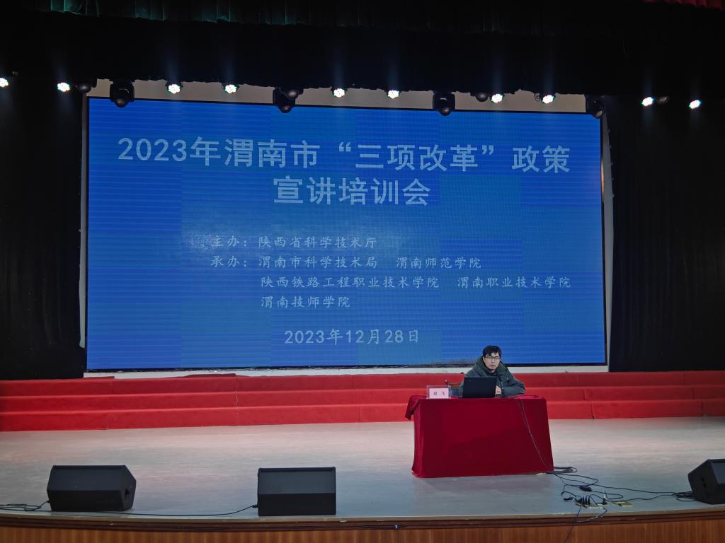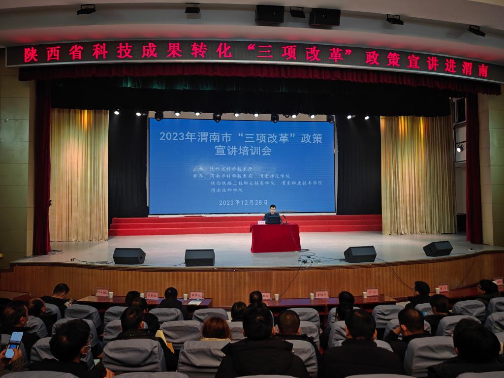 12月28日上午,由陕西省科学技术厅主办,渭南市科学技术局、陕西铁路工程职业技术学院、渭南职业技术学院、渭南技师学院和best365承办的2023年渭南市“三项改革”政策宣讲培训会在陶然楼演艺厅举行。宣讲团由省委党校教授翟晓舟、国家级西安联创生物医药孵化器副总经理芦伟、省科技资源统筹中心创新创业与科技金融部副部长谢飞组成。渭南市科学技术局党组成员、副局长张胜康主持会议。