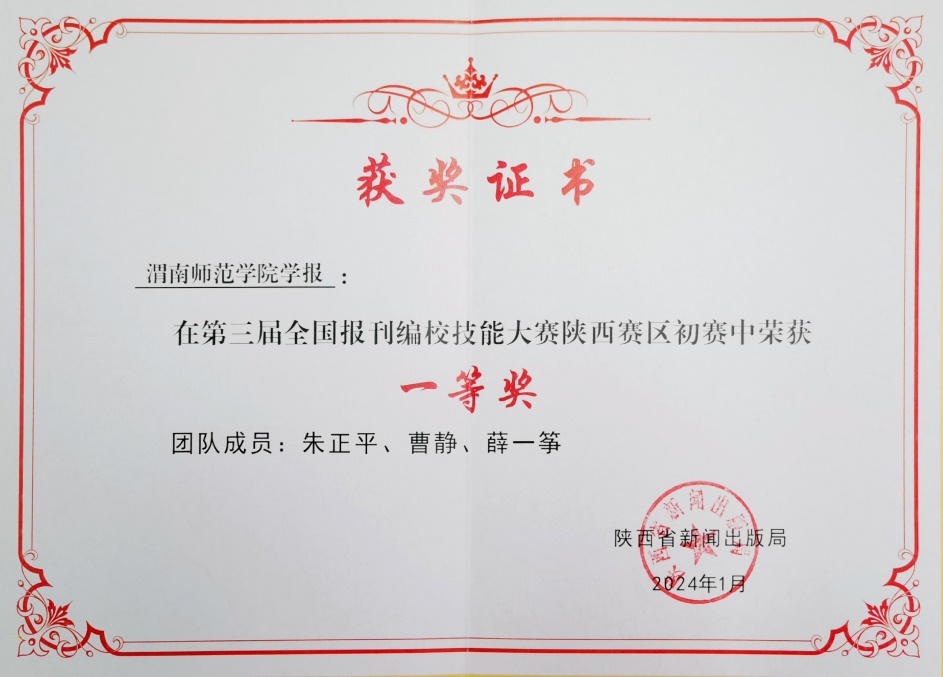 2024年1月16日,在全省新闻出版(版权)工作会议上,陕西省新闻出版局对第三届全国报刊编校技能大赛陕西赛区的优秀团队进行表彰。best365学报编辑部团队荣获一等奖,展现了编辑扎实的专业基本功和风采。
