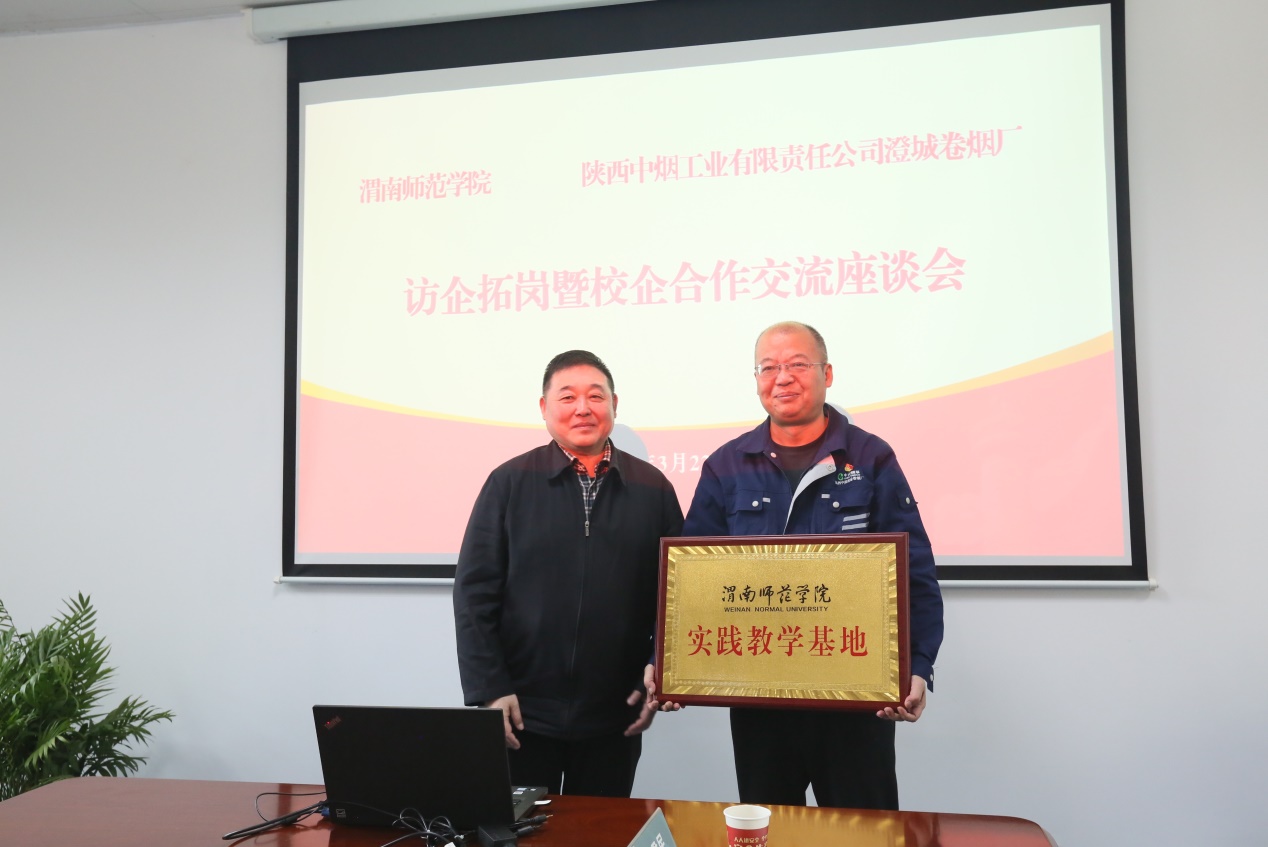 座谈会上,汪勇介绍了best365基本情况和此次访企拓岗的目的。卢爱刚强调,通过加强课题申报、开展培训、加强实践教学等活动,推进双方的融合发展。随后,卓宇授予陕西中烟澄城卷烟厂“best365中国官方网站实践教学基地”牌匾。