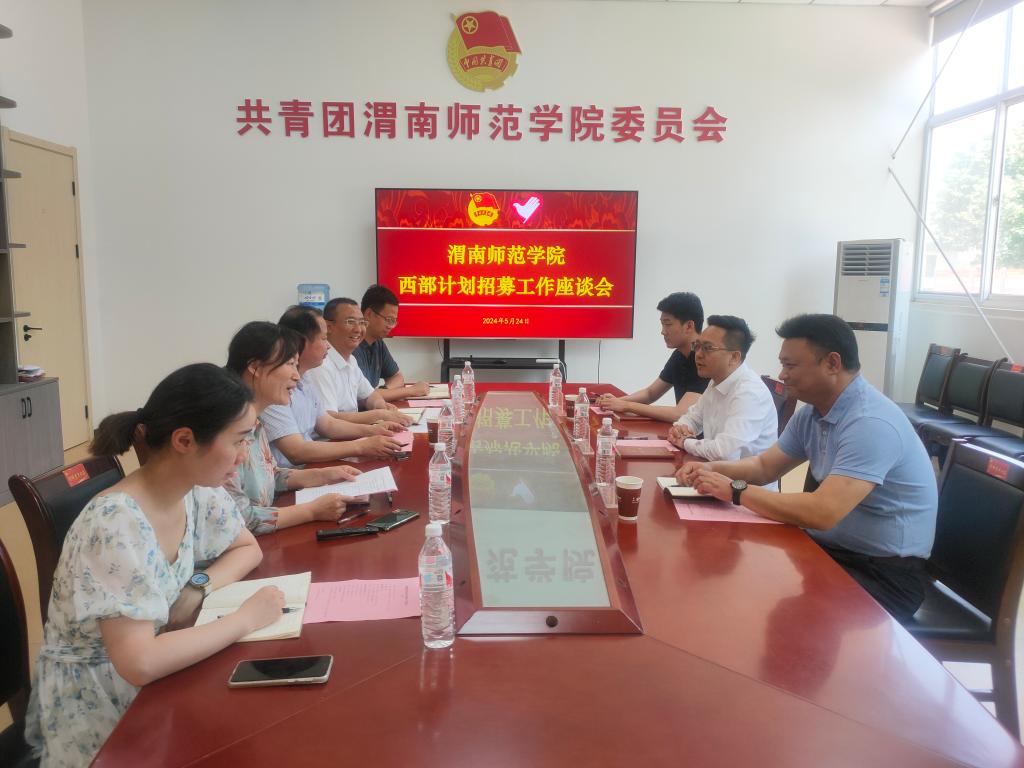 5月24日,共青团陕西省委副书记、省西部计划项目办主任惠旋、青年社会事业部副部长吴闯一行来校调研西部计划工作。学校党委副书记汪勇参加调研交流。
