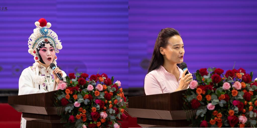 富平县阿宫剧团副团长李曼作为教师代表作表态发言,澄城剧团演员李静代表学员作表态发言。