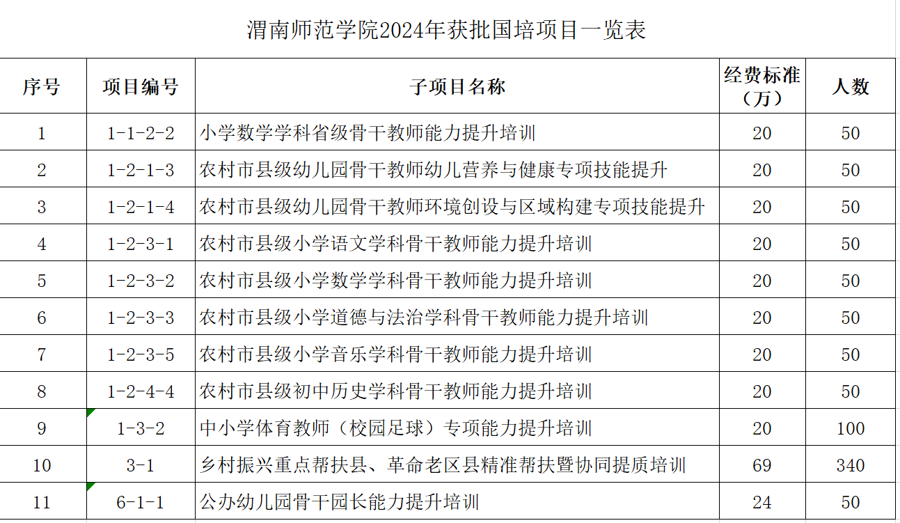 8月1日,陕西省教育厅发布了《关于拟定2024年“国培计划”——陕西省中西部骨干项目承办单位的公示》,best365获批2024 年“国培计划”—陕西省中西部骨干项目子项目共11项,培训学段学科涉及幼儿园、小学数学、小学语文、小学音乐、小学道德与法治、初中历史、初中体育等,培训总人数890人。