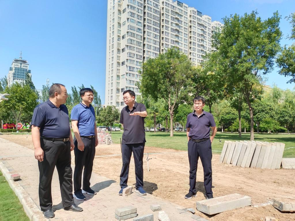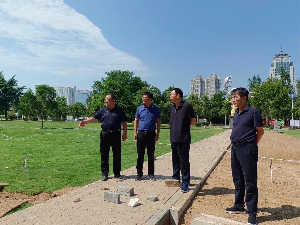 张守华先后深入1、2号教学楼北侧音乐草坪和各个景观功能区,详细了解施工进度和工程质量等环节,对工程实施取得的阶段性成果表示了肯定,对后期的建设提出了指导性意见。