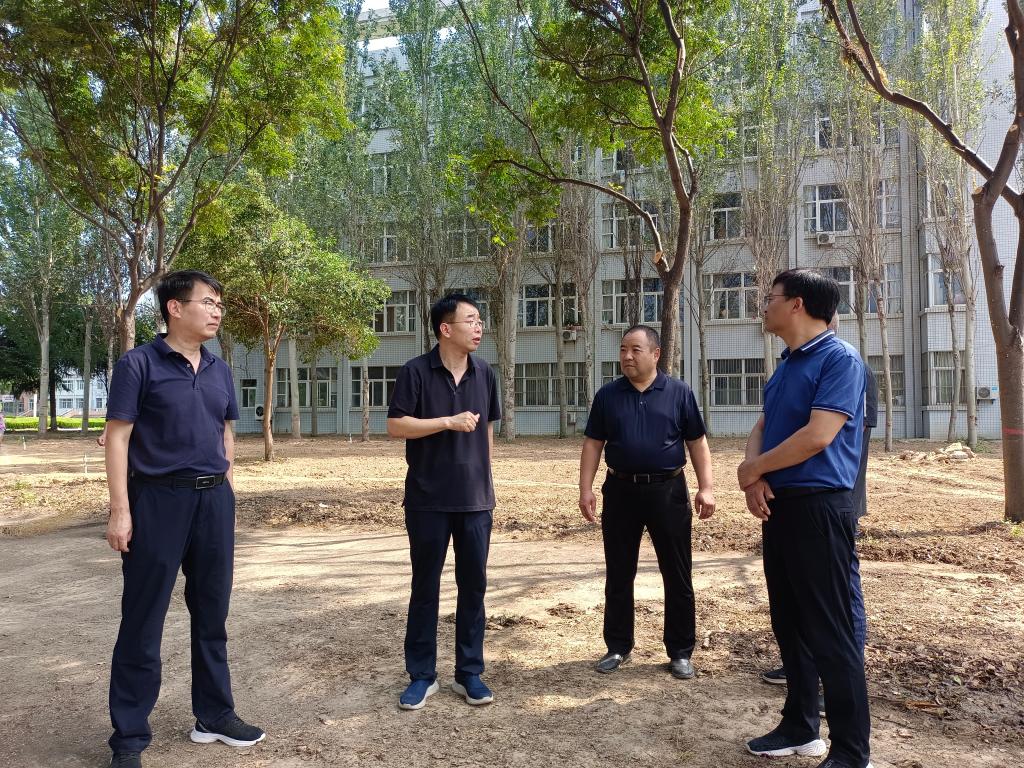 8月28日下午,校长张守华在党委副书记常青林陪同下到学校1、2号教学楼北侧检查指导绿化改造提升项目施工情况。