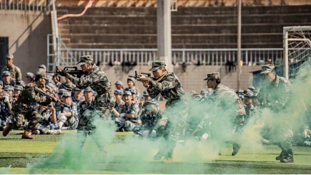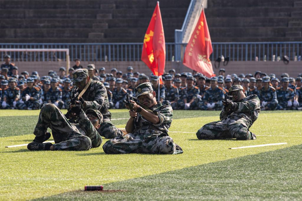 突击连方阵以整齐的队列、雄壮的气势拉开了总结大会的序幕;格斗方阵和应急棍方阵的同学们整齐划一、刚劲有力、精神饱满;由退役在校大学生军训教官组成的“追风”战斗演练排,利用战术手势无声沟通,灵活穿梭障碍之间,穿越硝烟弥漫的模拟场景,高超的协同作战能力,彰显男儿本色和军人铮骨的精彩呈现,将此次总结大会推上高潮,为军训总结画上了圆满句号,生动诠释了“恰同学少年,风华正茂;书生意气,挥斥方遒”的青年气概,展现了“爱党爱国,强国有我,保家卫国”的责任担当,引得现场掌声雷动。