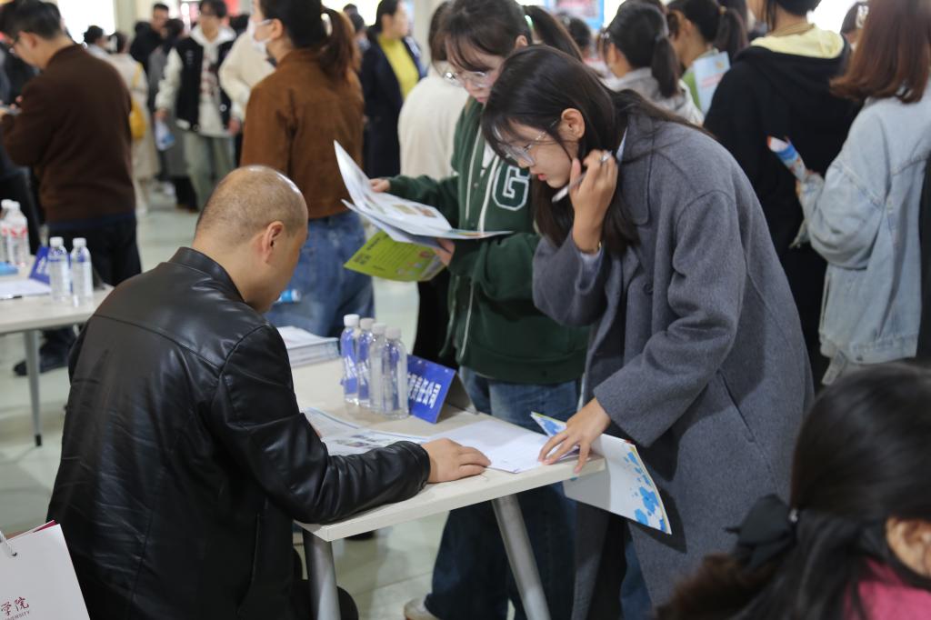 合阳县人社局副局长党锋杰、县教体局副局长李宏,学校学生工作处副处长、各二级学院党总支副书记、就业指导中心工作人员、毕业班辅导员带领毕业生参加招聘会。(通讯员 王哲 审核人 田耿辉)