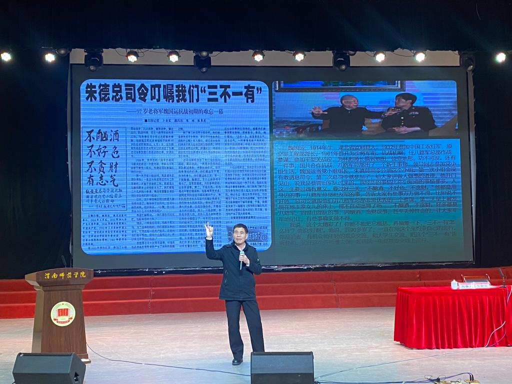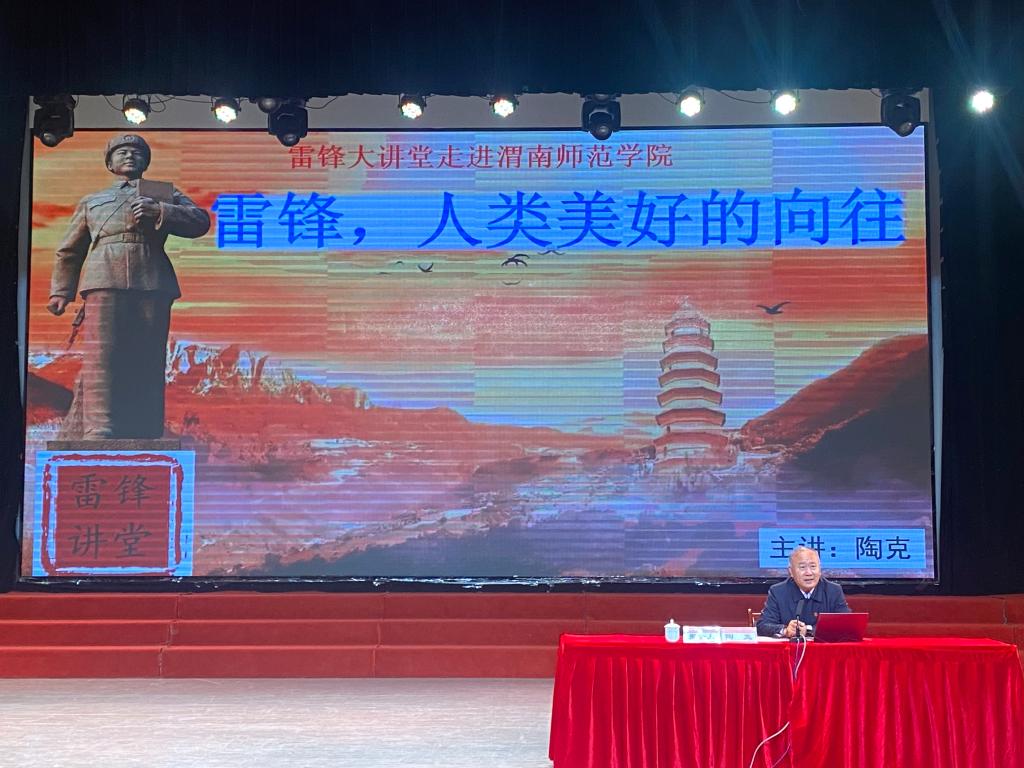 12月2日,学校邀请解放军报社原副总编辑、《雷锋》杂志总编陶克将军,二级英模,原解放军报社高级编辑卜金宝,为师生带来一场意义非凡的雷锋精神宣讲会。渭南市委常委、渭南军分区政委何勇进,校长张守华出席报告会,校党委副书记汪勇主持报告会。