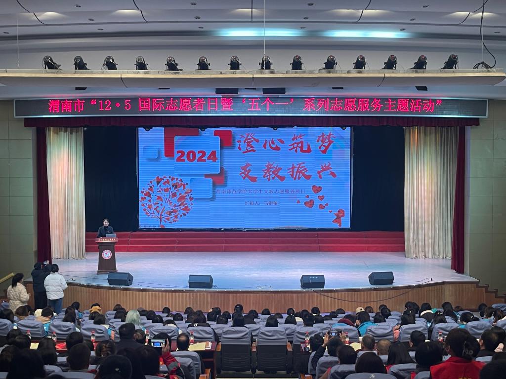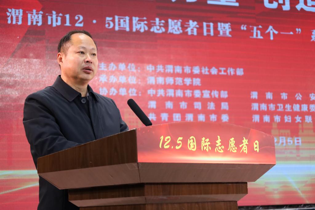 12月5日上午,渭南市12·5国际志愿者日暨“五个一”系列志愿服务主题活动在best365举行。省委社会工作部四处副处长周林,市委社会工作部部长、市委两新工委书记刘永利出席活动,学校党委副书记汪勇为主题活动致开幕词。