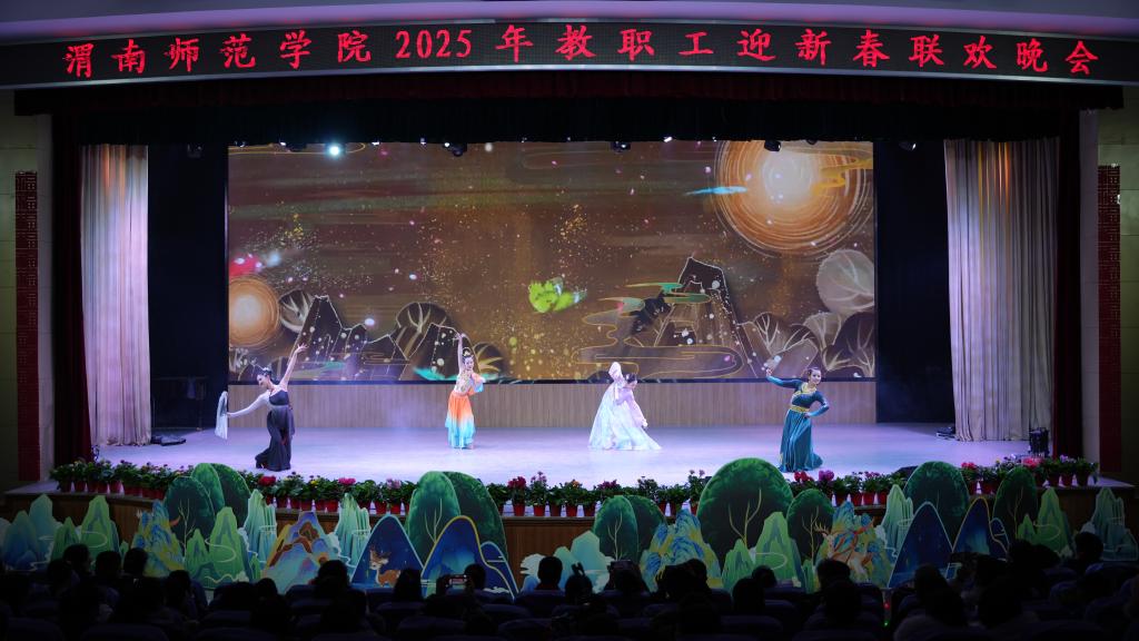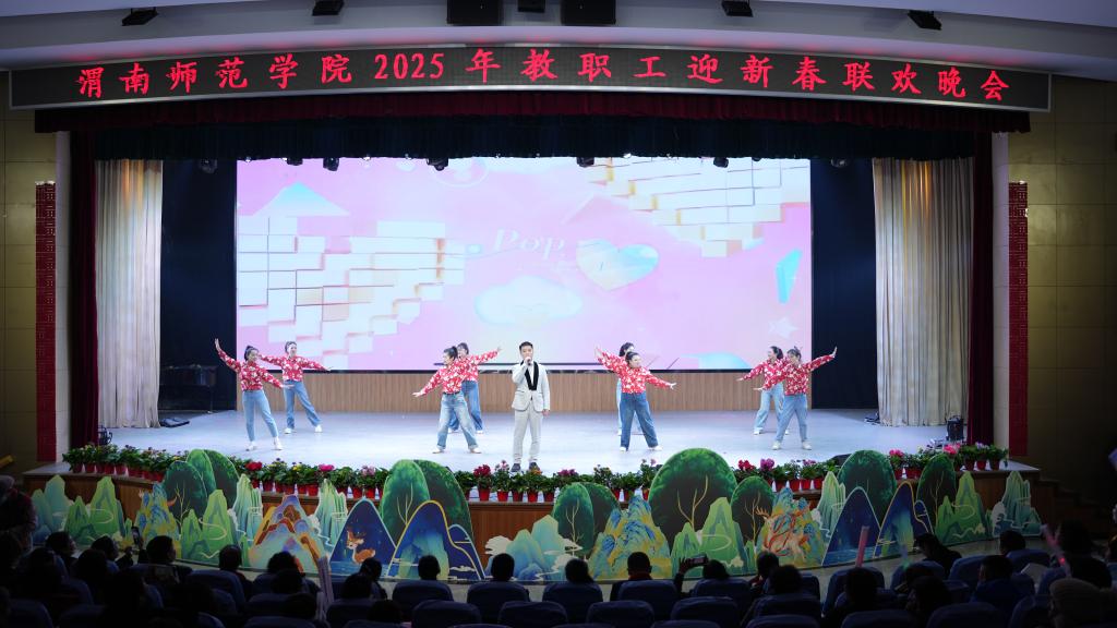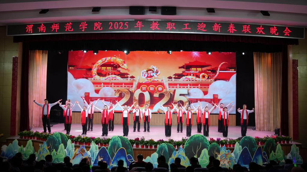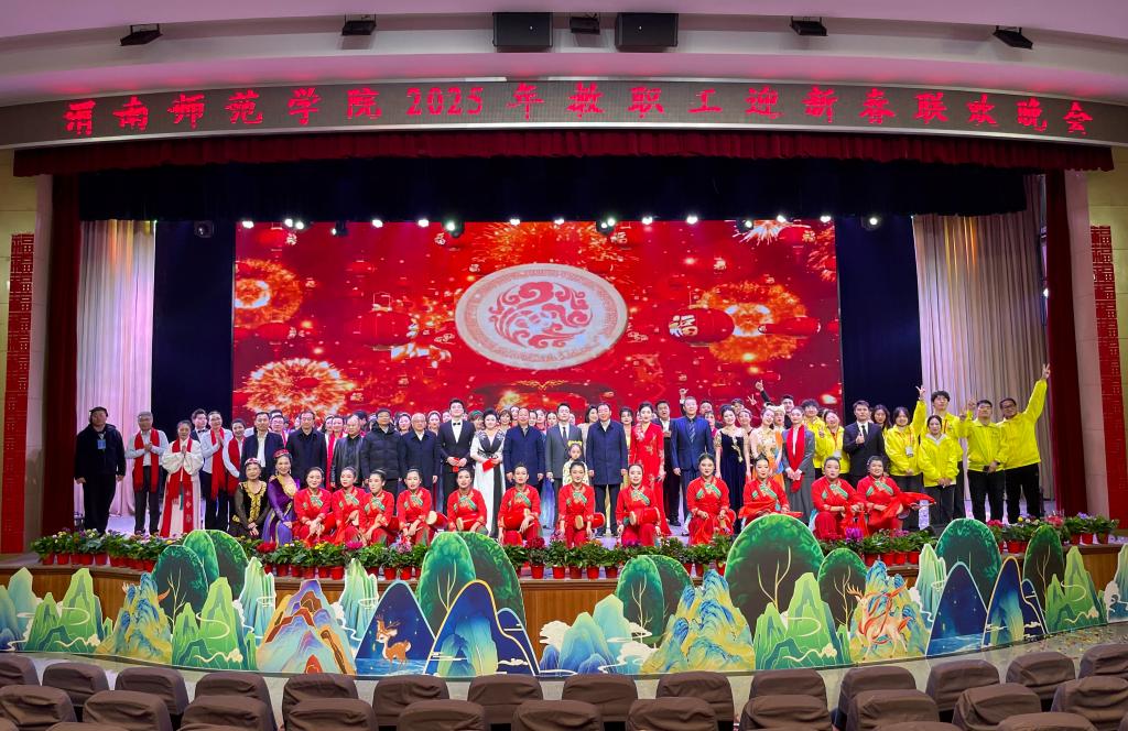 2025年教职工联欢晚会的节目由17个二级分会推送,晚会演出现场喜庆祥和,演出人员积极投入,观众热情高涨,台上台下演出人员与观众联欢互动。