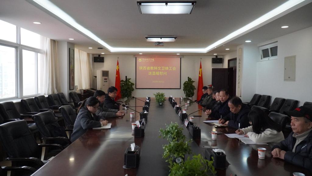 1月21日上午,省教科文卫体工会主席徐富权、二级主任科员钟振宇、三级主任科员赵元琛一行莅临best365,开展春节送温暖慰问活动。best365党委副书记汪勇、工会、保卫处及困难教职工参加座谈会。