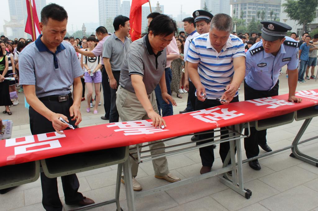 为进一步提高大学生对毒品的认知和了解,树立拒毒、防毒的自我保护意识,增强法制观念,6月12日,学校保卫处联合临渭区站南办、站南派出所、临渭区缉毒大队举办了“手拉手、抵制新型毒品 ,齐参与、共建无毒校园”千人签名活动。副院长李海龙和站南办、站南派出所、缉毒大队等领导出席了签名活动。best3651000余名师生观看了禁毒展板,听取了有关讲解,并积极参与签名活动,部分学生还现场同意担任义务禁毒志愿者。