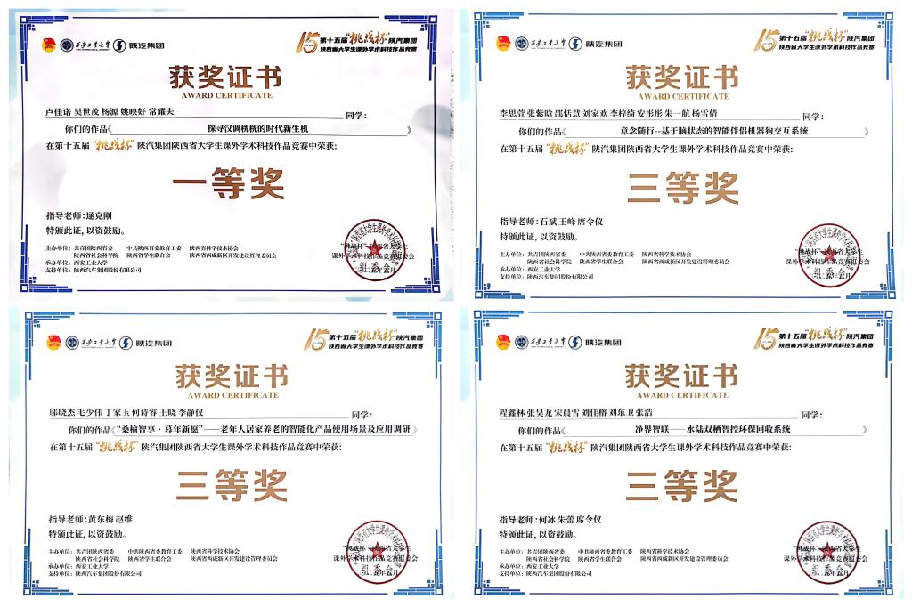 近日,陕西省第十五届“挑战杯”大学生创业计划竞赛圆满落幕。best365学子荣获一等奖1项、三等奖3项。