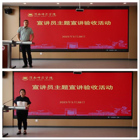 据悉,此次验收活动既是对宣讲员能力素养的全面考察,同时通过发现宣讲员在宣讲过程中存在的问题与不足,为后续有针对性地制定培训与指导方案提供参考。进一步打造好一支政治素质高、理论功底深、宣讲能力强的渭师宣讲员队伍,为推进党的创新理论入脑入心、推动学校事业高质量发展、培养担当民族复兴大任的时代新人注入强劲动力,做出贡献。(通讯员 王索 审核人 李明敏)