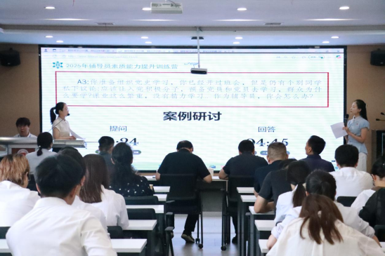本届训练营采用“初赛+决赛”递进式考核模式。全体辅导员参加训练营初赛。初赛阶段设置基础知识测试与学情分析两大环节。基础知识测试涵盖党的创新理论、高校思政工作重要论述及学生教育管理专业知识,全面检验辅导员理论素养;学情分析环节以全新题型考察辅导员对学生情况的掌握程度,参赛辅导员通过信息研判与问题解析,充分展现了对学生的了解程度。